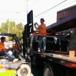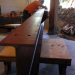 The wood beams need to be cut out so the steel beam can sit between them. The new steel beam will have metal buckets that hold the old wood beams. The old Douglas Fir wood beams were so tough we had to rent a chain saw.