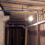 The biggest challenge we faced was the ceiling in the Music Room. The ceiling is actually the underside of the sidewalk! So it’s easy to see how water could seep down through the concrete and drip down the ceiling. The drainage mat had to be installed in big, continuous sheets that go from the ceiling, down the wall, and into the floor drainage pipe. It was a pain in the neck! Literally. Installing that drain mat over your head actually hurts your neck. There was a lot of grumbling when we were installing the drain mat on the ceiling.