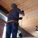 I’m used to building difficult stuff, but these doors were a pain in my neck. The track had to be hung from threaded rods connected to the ceiling on one half, and brackets screwed into a wall on the other half. We had to make some pieces for the metal brackets on site, since the track kit did not come with any way of hanging the cursed thing from threaded rods.